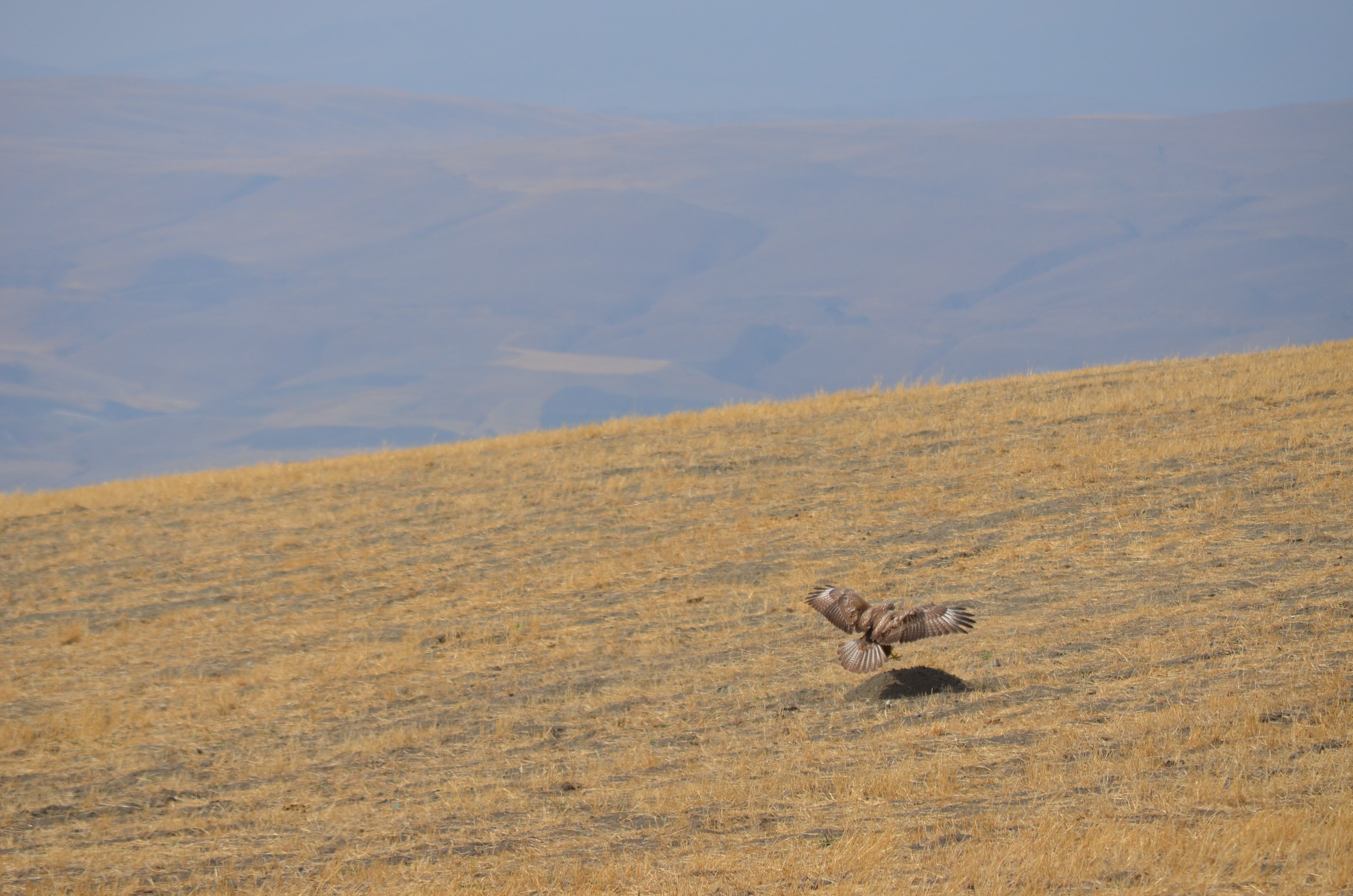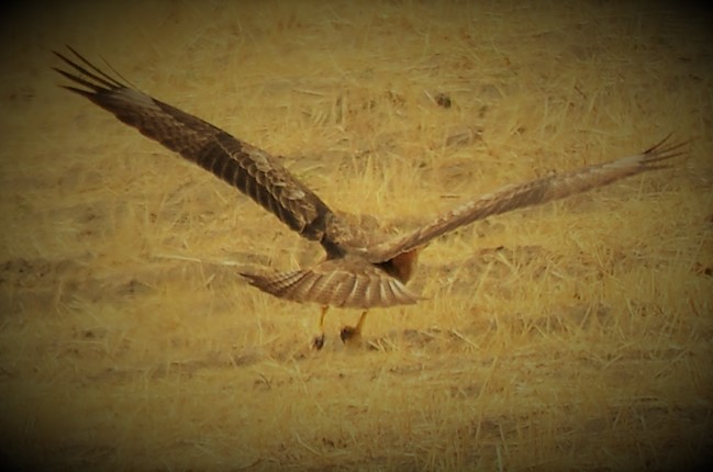 ButeoRufinusLong-LeggedBuzzard It is slightly larger than a hawk, has long wings and a long tail. Its clothing, especially under its wings, is mostly red. Its chest is light colored, its abdomen opposite the chest is dark colored, its tail is cream colored without stripes in adults, while the juvenile's may have thin stripes. The inside of the hand feathers under the wings are pure white. Its voice is very similar to a hawk. As it turns and rises, it lifts its wings higher than the hawk, and keeps its wings straight or upturned while gliding. It is found in plains, steppes, mountains and similar open terrain. The average length between the beak tip and the tail tip is 50-65 CM, the average wingspan between the open wing tips is 126-148 CM.